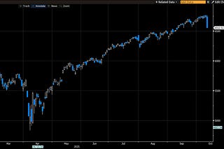 📈 La settimana doveva sancire un nuovo trionfo per Wall Street, con l’S&P 500 ai massimi storici trainato dall’AI 🤖 e dalle attese sui tagli Fed 💸.