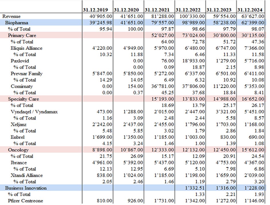 Il suo segmento operativo Biopharma comprende tre gruppi: