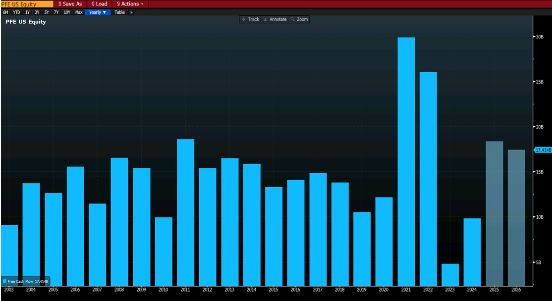 Questa leadership si riflette nella capacità di Pfizer di generare flussi di cassa: