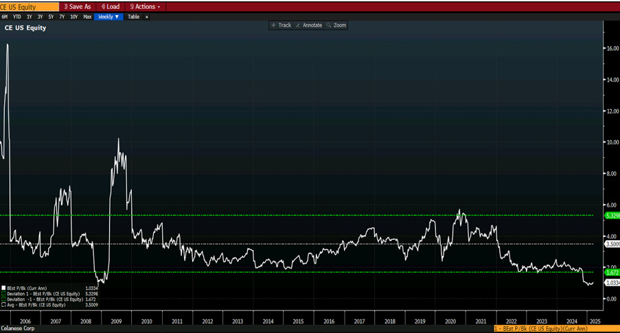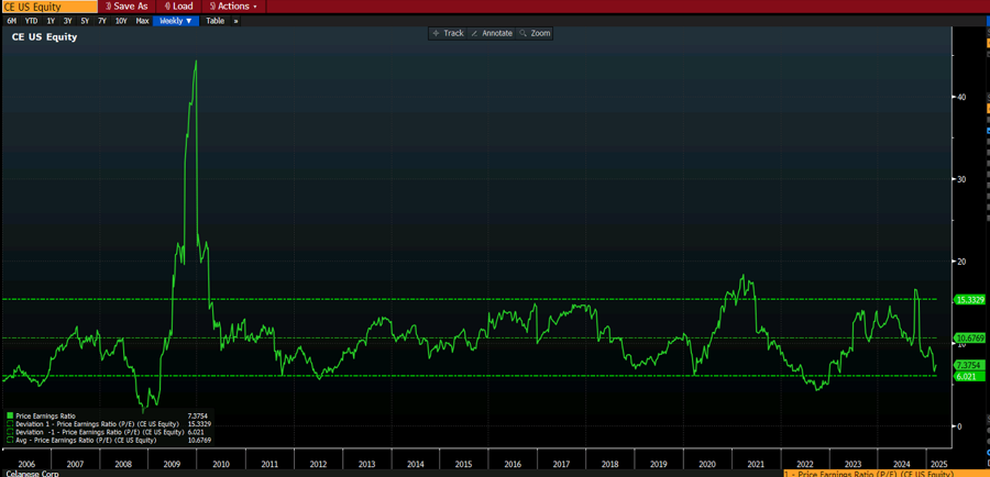 Celanese si trova a forte sconto su un po’ tutte le misure di valore.