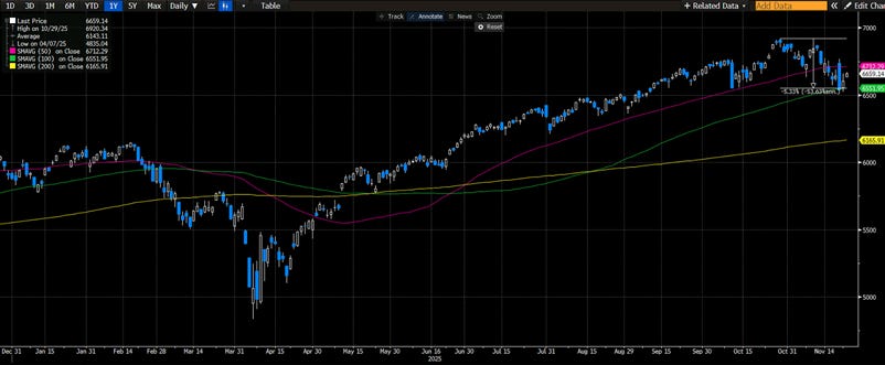 La settimana che abbiamo vissuto ci ha mostrato chiaramente quanto l’umore dei mercati possa cambiare nel giro di poche ore. Arriviamo da un novembre difficile, con l’S&P 500 sceso di oltre il 5% dai massimi e il Nasdaq quasi dell’8% e giovedì è stato emblematico: un’apertura forte, sostenuta dai dati sul lavoro e dal rimbalzo di Nvidia in seguito alla trimestrale, si è rapidamente trasformata in un rosso generalizzato.