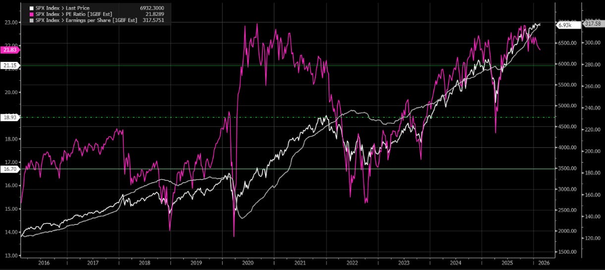 La settimana appena conclusa ha segnato un passaggio importante nel tono dei mercati. Non tanto per l’entità dei movimenti, quanto per la natura delle vendite. È stata una settimana volatile, ma non nel senso classico di shock sistemico o di deterioramento improvviso dei fondamentali. Piuttosto abbiamo visto conferme sulla fragilità che nasce quando molte cose stanno andando bene, e le aspettative troppo elevate, un tema che abbiamo abbondantemente discusso nei precedenti podcast.