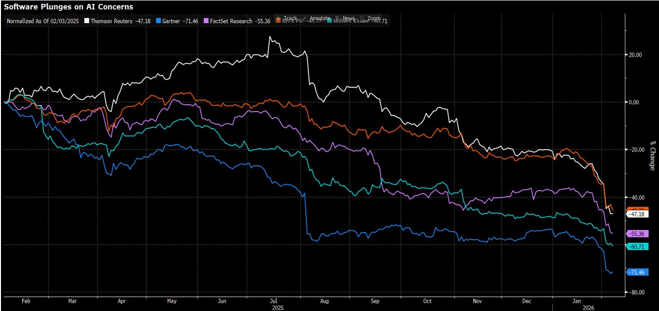 Qui non si tratta ancora di un crollo degli utili, anzi, ma di una rivalutazione del valore dei flussi di cassa futuri. La paura che l’intelligenza artificiale renda commodity molti software ha innescato una compressione dei multipli di tutte le società del settore, nessuno escluso. Allo stesso tempo, il “premio narrativo dell’AI” sta iniziando a svanire. Oggi il mercato chiede qualcosa di diverso: monetizzazione misurabile, ritorni sul capitale, disciplina nei costi. Annunciare nuovi investimenti non basta più. E infatti, trimestrali formalmente solide sono state punite duramente quando accompagnate da esplosioni di CapEx.