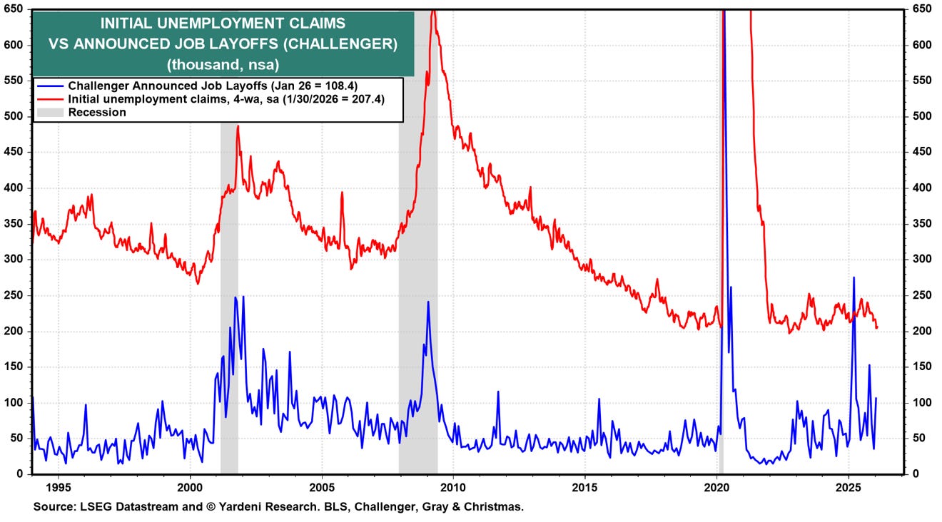 I dati macroeconomici negli Stati Uniti hanno iniziato a mostrare un raffreddamento più visibile del mercato del lavoro. Le richieste di sussidi di disoccupazione, i dati Challenger sui licenziamenti e le aperture JOLTS sono risultati tutti peggiori delle attese. Nulla che, preso singolarmente, indichi una recessione imminente. Ma nel loro insieme, questi segnali suggeriscono che la crescita dell’occupazione si stia indebolendo, anche in presenza di un’economia che continua a crescere.