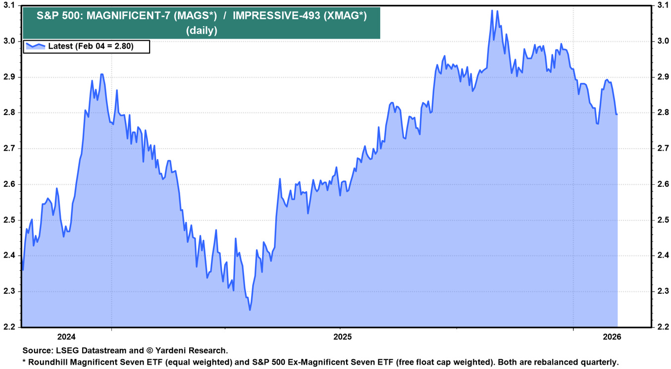 La cosa più importante, però, è ciò che non è successo. Non abbiamo assistito a una vendita generalizzata. Gli indici allargati hanno tenuto relativamente bene. Da inizio anno, l’S&P 500 è poco mosso, il Russell sovraperforma, l`S&P500 equipesato è sui massimi storici e anche l’Europa resta positiva. È la conferma che non siamo di fronte a un bear market, ma a una fase di riequilibrio e ampliamento della leadership.