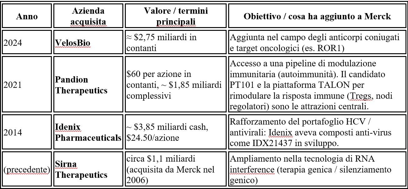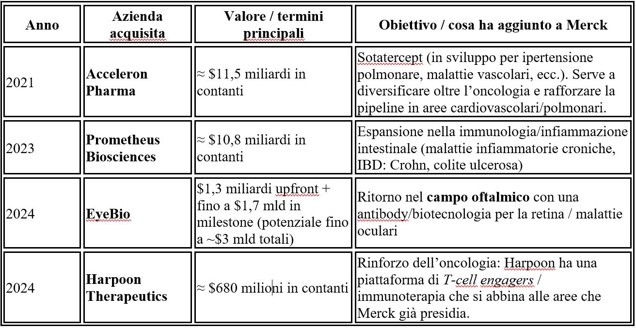 Inoltre Merck & Co., Inc ha utilizzato molte operazioni di M&A e queste hanno avuto effetti sulla crescita: