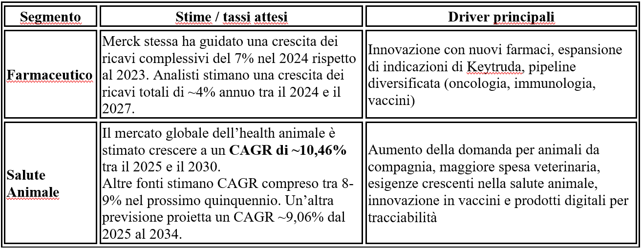 Il lancio di ulteriori farmaci oncologici e la strategia di differenziazione attraverso le formulazioni (come quella sottocutanea) contribuiranno a rafforzare le vendite complessive, ma lâelevata dipendenza da un singolo blockbuster resta una delle principali fonti di incertezza per il mercato, che teme un forte impatto sul profilo di crescita e sulla redditivitĂ di Merck & Co., Inc nel medio periodo.