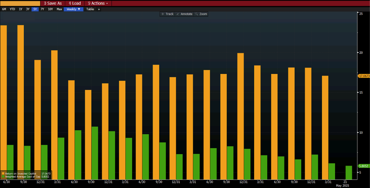 3. Queste aziende hanno rendimenti sul capitale superiori al 15-20% (colonna gialla) e decisamente superiori al costo del capitale (colonna verde):