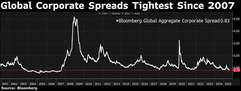 Il VIX resta su minimi pluriennali, mentre gli spread creditizi continuano a riflettere una compiacenza diffusa.