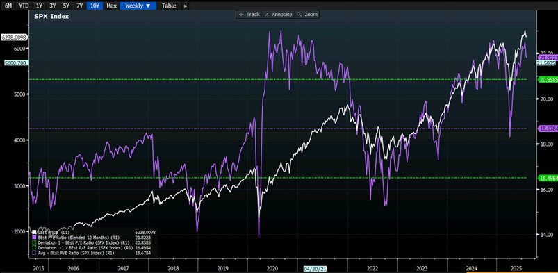 Questo movimento correttivo segnala che il mercato stava prezzando uno scenario quasi perfetto, dopo un rally straordinario dai minimi di aprile. Tra aprile e luglio, una combinazione favorevole di dati macroeconomici in stile “Riccioli d’oro”, una stagione degli utili brillante e l’attenuarsi dei timori sui dazi aveva spinto gli indici su valutazioni molto superiori alle medie di lungo periodo.