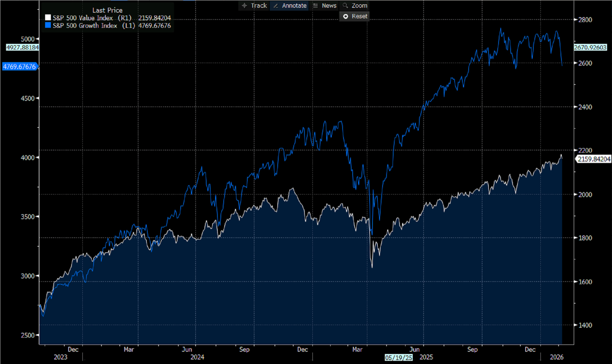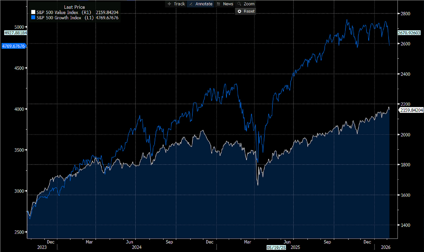 Il fattore value segna nuovi massimi storici, e quello growth accusa una battuta d`arresto.
