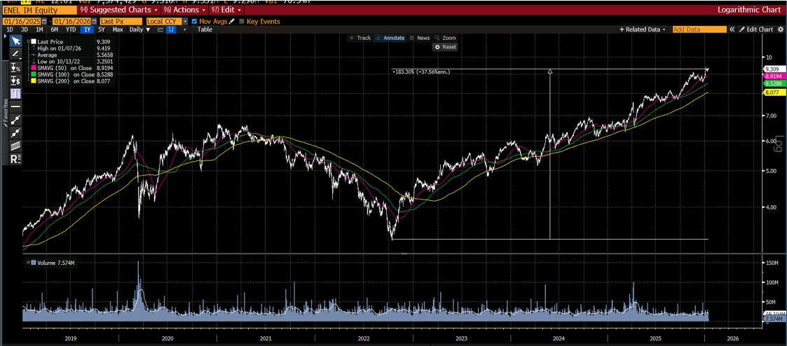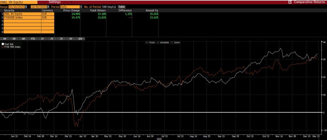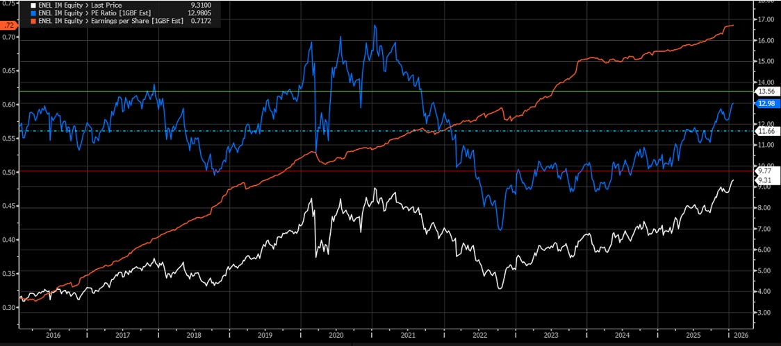 Detto questo, il margine di sicurezza è sottile. Quando compri una utility non stai scommettendo su un colpo di scena, stai scommettendo su una sequenza di cose che devono andare “abbastanza bene”: regolazione, execution sugli investimenti, volatilità dei prezzi energia, costo del capitale. Se il prezzo non ti lascia spazio, basta una deviazione piccola per rendere il rendimento mediocre.