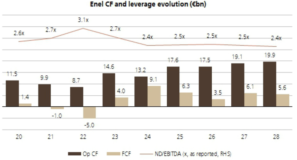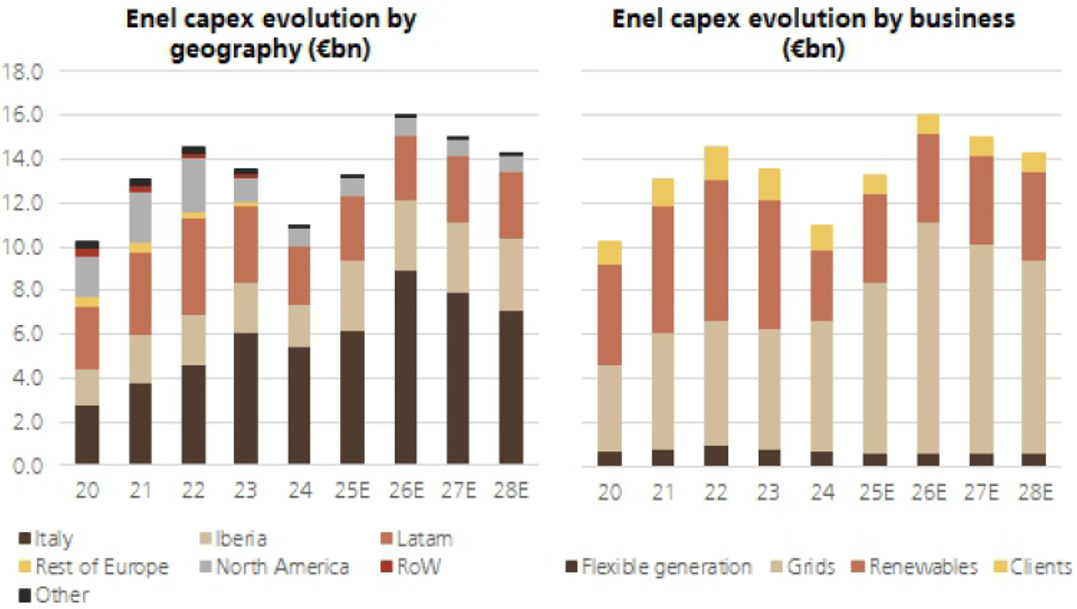Sul capitale, il triennio prevede circa 43 miliardi di capex lordi, con la parte principale sulle Grids (~26 mld) e il resto soprattutto su Renewables (~12 mld) e Customer (~2,7 mld).