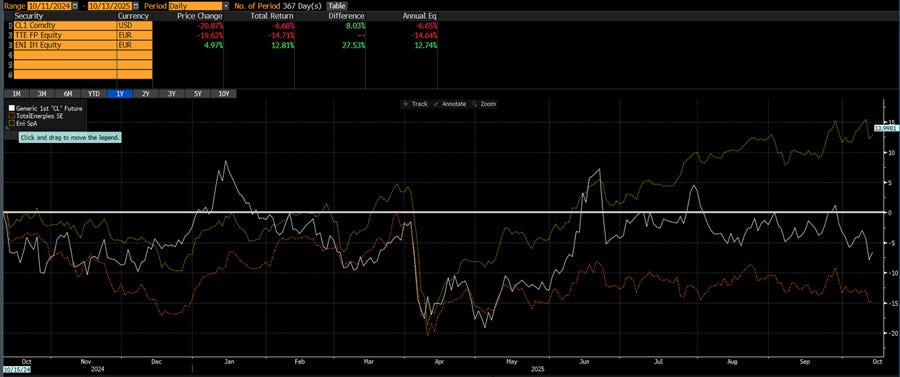Nel primo semestre 2025, la performance di ENI era trainata quasi esclusivamente dal petrolio.