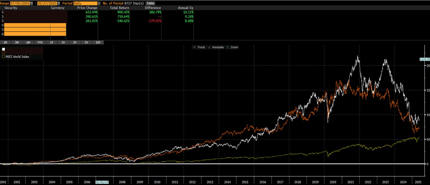 Le due aziende che analizziamo sono due aziende con una storia ultra centenaria e nonostante l’attuale correzione del 50% hanno mostrato comunque un rendimento fra il 9% e il 10% all’anno dal 2000!