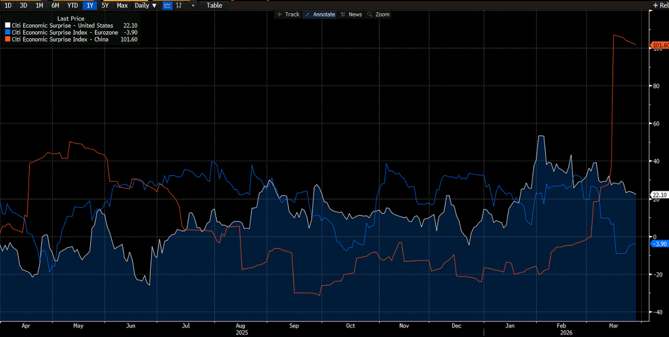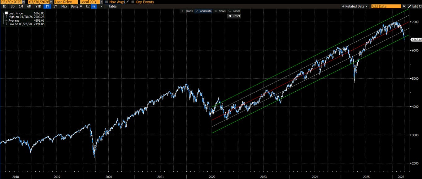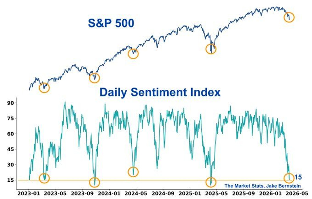 Se guardiamo a quello che sta succedendo oggi sui mercati, il primo elemento che salta all’occhio è un livello di incertezza estremamente elevato, guidato quasi interamente dal contesto geopolitico. Basti guardare il Daily sentiment index ovvero un indice sull`ottimismo dei trader che si trova sui minimi da Aprile 2025.