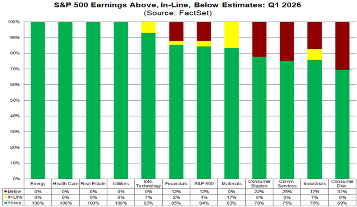 Detto questo, sarebbe sbagliato trasformare questa lettura in un messaggio troppo rassicurante. Perché c’è anche un altro lato della medaglia. Se le aspettative sugli utili sono così forti, allora il livello di difficoltà per la reporting season si alza inevitabilmente. E lo stiamo già vedendo. Non basta battere le stime: bisogna convincere sulle guidance. IBM e ServiceNow, per esempio, hanno superato le attese su ricavi e utili, ma non sono riuscite a rassicurare il mercato sui timori legati alla disruption dell’intelligenza artificiale, e i titoli sono stati colpiti. Tesla ha riportato numeri superiori alle stime, ma il mercato si è spaventato per l’aumento dei capex. Al contrario, Lam Research e Intel hanno beneficiato del fatto che il tema AI, nella parte hardware e semiconduttori, continua a essere percepito come molto più solido e difendibile.
