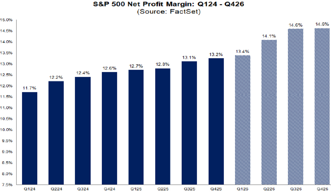 Ed è proprio il tema dei margini a rendere questa fase ancora più interessante. Spesso si tende a pensare che un’inflazione più alta sia automaticamente negativa per il mercato, perché pesa sui consumi reali, sui tassi e sulle valutazioni. Ma questa è solo una parte della storia. L’altra parte è che l’inflazione, se non degenera in un problema fuori controllo, può anche sostenere il PIL nominale, i ricavi e in molti casi perfino i margini. E infatti oggi una quota importante della crescita attesa degli utili deriva proprio dall’espansione dei margini, più ancora che dalla crescita delle vendite. I margini forward dell’S&P 500 erano intorno al 12% alla fine del 2019, sono saliti al 14,5% a fine 2025 e oggi si muovono già oltre il 15%.