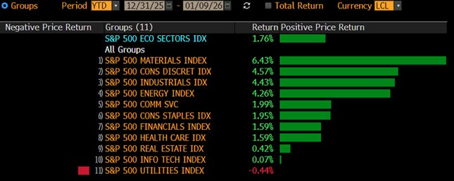 Aneddoto statistico: L’S&P 500 è in aumento di oltre l’1% dopo i primi 5 giorni del 2026. Storicamente, quando ciò accade, l’intero anno è positivo più dell’87% delle volte e in media la performance a fine anno è di quasi il 16%. Seguendo queste statistiche questo mercato rialzista probabilmente è tutt’altro che finito, Numeri che fanno ben sperare, ma che vanno letti come una bussola, non come una garanzia.