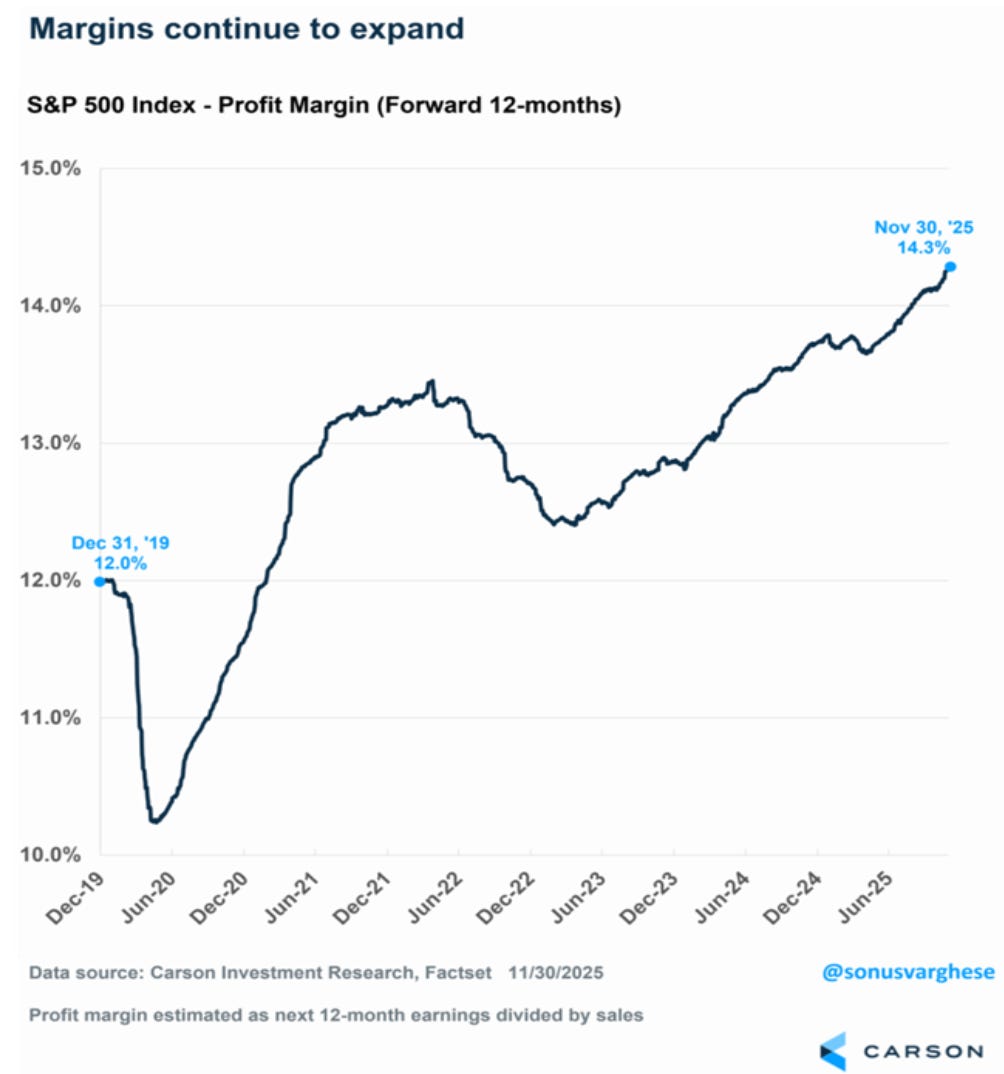 L`utile per azione atteso per i prossimi 12 mesi dell`S&P500 è in crescita di oltre il 12% da inizio anno, con margini operativi attesi che hanno raggiunto un nuovo massimo storico, attorno al 14,3%.