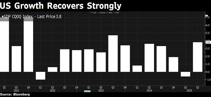 Sul fronte macroeconomico, il dato finale sul PIL USA del secondo trimestre è stato rivisto al rialzo al 3,8% annualizzato, superando le attese.