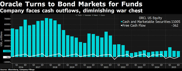 La transizione da una fase di investimenti finanziati con liquidità a una fase di capex finanziata con debito è attesa nel 2026 (a dire il vero Oracle ha già iniziato). È possibile che sarà quello il momento in cui il mercato inizierà a interrogarsi sulla sostenibilità e sull`effettivo ritorno economico di questi investimenti.