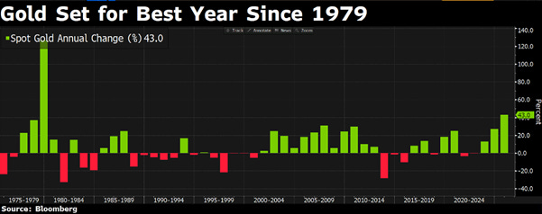 Il mercato dell’oro continua a segnare nuovi massimi storici, con una performance YTD del +40%, la migliore dal 1979.