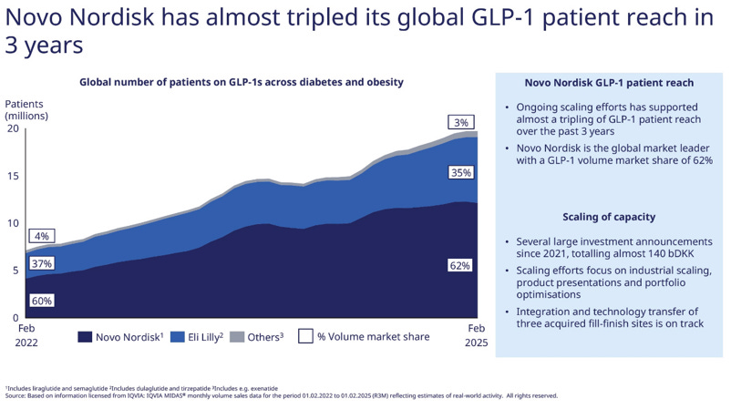 Novo Nordisk è l'azienda specializzata in insulina e diabete da 100 anni ed insieme all’americana Eli Lilly si divide la quota di mercato dell’insulina globale. Novo Nordisk insieme all’americana Eli Lilly sono il punto di riferimento globale nella cura del diabete. In particolare Novo Nordisk è il leader nei farmaci iniettabili, che continuano a rappresentare la parte preponderante del suo fatturato.