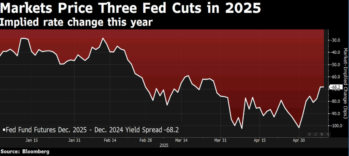 Partiamo dalla Fed che per la terza riunione consecutiva ha deciso di lasciare invariati i tassi, una decisione dettata da prudenza, in un contesto sempre più incerto. Il presidente Powell ha ribadito che l’impatto economico dei dazi è ancora difficile da quantificare e che Il sentiment, sia delle imprese che dei consumatori, si è indebolito, ma per il momento i dati dell’economia reale tengono. Tuttavia, Powell durante la conferenza stampa ha messo in guardia il mercato su una prospettiva di stagflazione che si potrebbe fare più concreta, affermando che “Se i forti aumenti dei dazi saranno sostenuti, è probabile che generino un aumento dell’inflazione, un rallentamento della crescita e un incremento della disoccupazione”. Sono ad oggi 3 i tagli dei tassi impliciti stimati dal mercato per il 2025.