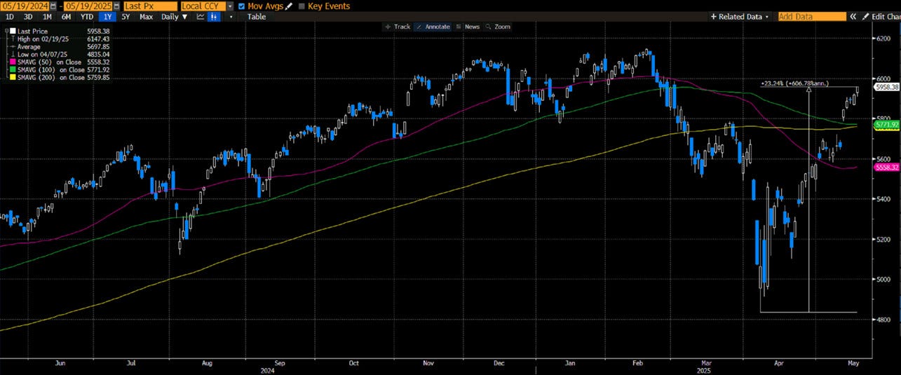 A dare ulteriore slancio ai mercati è stato inoltre il dato sull’inflazione di aprile con Il CPI core che si è attestato al 2,3% su base annua, Ma ciò che ha colpito maggiormente è l’inflazione depurata dai costi dell’alloggio: solo il +1,8%. Un segnale forte, che ha sorpreso positivamente gli investitori, soprattutto considerando l’ambiente di tensioni tariffarie.