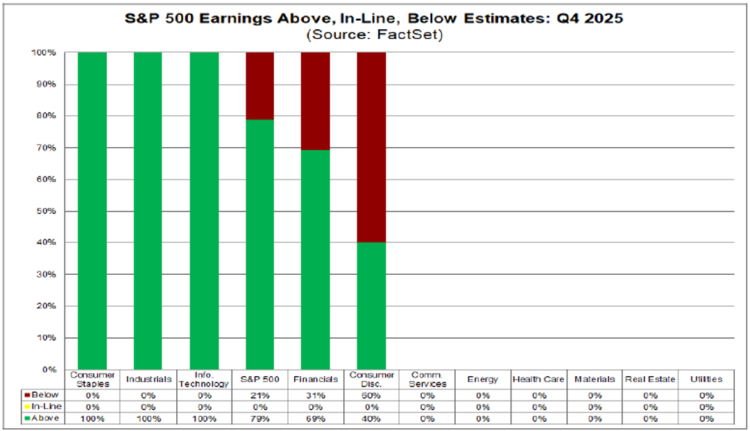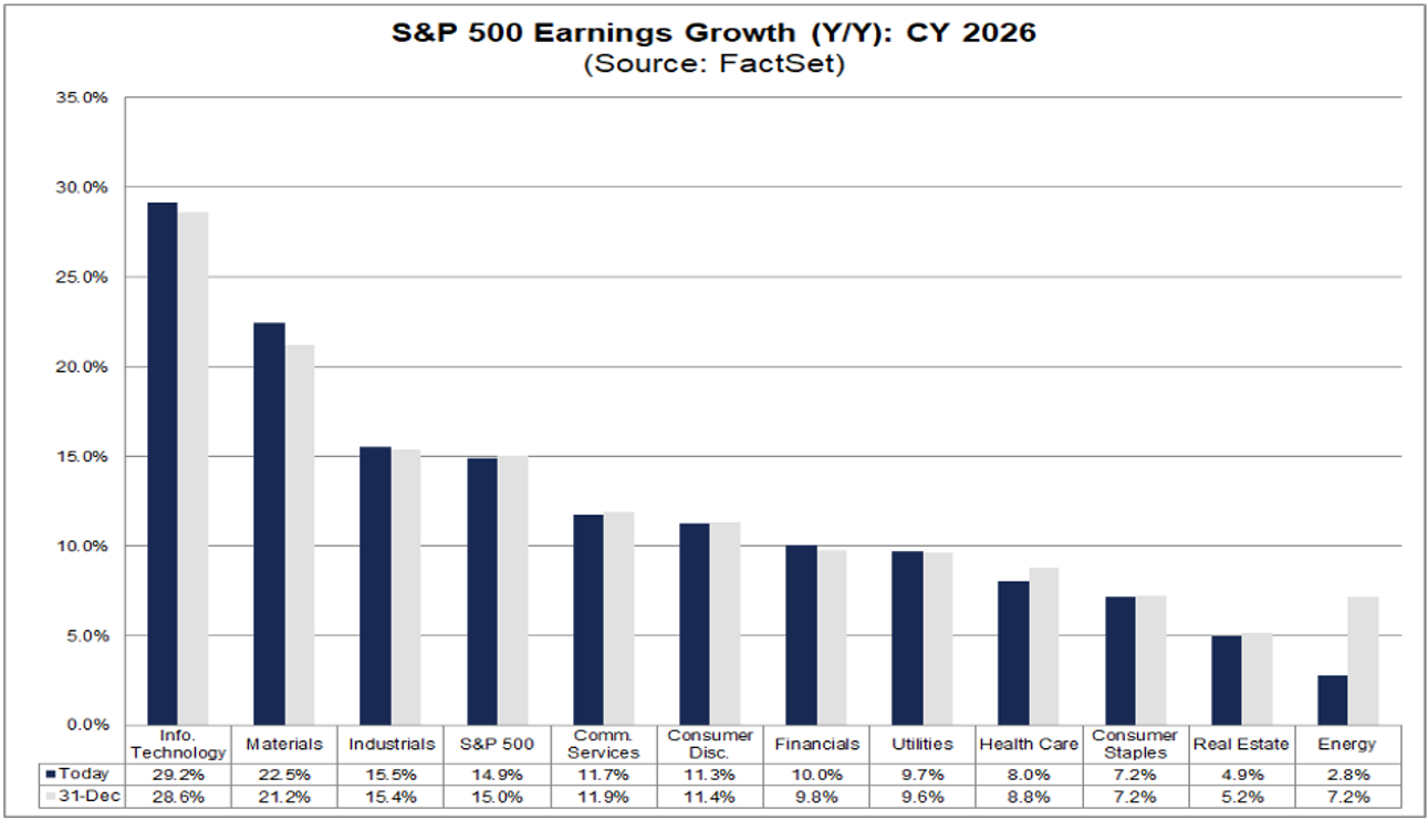 Arrivando al cuore di questa settimana, il vero tema non è stato tanto il movimento degli indici, quanto l’avvio della reporting season americana e, soprattutto, il contesto di aspettative dentro cui questa stagione degli utili prende forma. Oggi Wall Street entra nel 2026 con un consenso estremamente ottimista. Le stime parlano di una crescita degli utili dell’S&P 500 intorno al 15%, ben al di sopra della media storica.